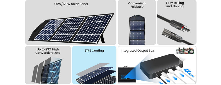 The solar charging efficiency of this panel is outstanding. It charges my portable power station much faster than I expected. The foldable design makes it convenient to carry around.
